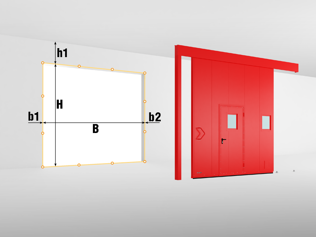Минимальный размер пристенка b2 - размер проема + 400 мм.